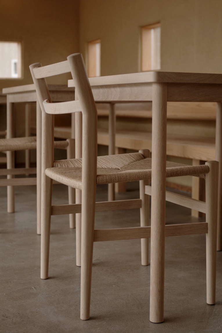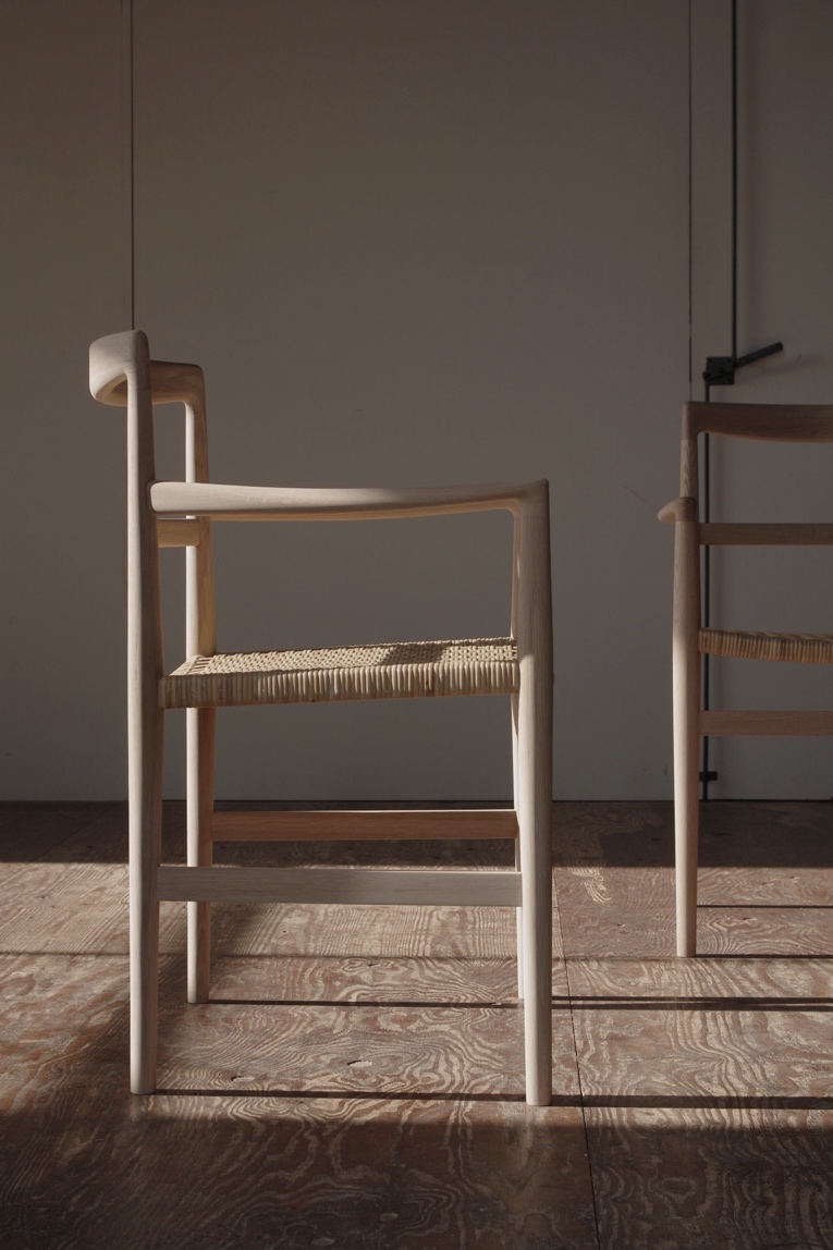 昔からあるような椅子らしいかたちをした編み混み座面の椅子。1960年代頃の北欧デザインを意識しているのもそれが合理的で普遍的であるという理由からです。匿名の名もなき優れたデザインの製品は世の中にも沢山あります。アノニマスデザインと呼ばれる誰しもが一度は手にしたことがあるような凡庸性がある製品。どこにでもありそうな普遍性のあるものこそを丁寧に作るというのが私たちのもの作りの根底にはあります。
